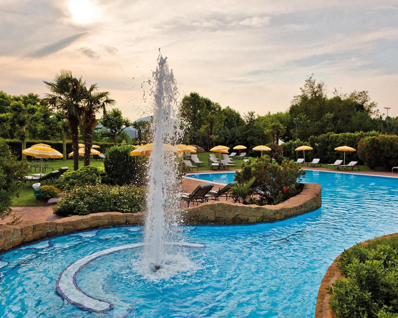 Sus 97 habitaciones están decoradas con tonos plateados, paredes de color marfil, vidrio y pisos de mármol negro. Este estilo innovador está presente en todas partes: en el centro de bienestar, en el bar Majestic Lounge con vista al balneario y a las colinas circundantes, en las salas de conferencias y en el restaurante Atmosphere. El chef prepara una cocina basada en especialidades internacionales y mediterráneas para combinar con los vinos de la bodega de la propiedad. En el corazón del parque privado, de no menos de 35 hectáreas, se encuentran las Termas de Galzignano, donde el agua termal brota naturalmente a una temperatura de entre 29 y 35 grados: recomendamos, en efecto, detenerse para hacer una pausa. Además, no se puede ir sin una visita a las Colinas Euganeas. Los jugadores de golf encontrarán al menos 4 campos a media hora en coche del hotel, incluyendo el Golf Terme di Galzignano que se encuentra en el lugar. El hotel ofrece servicio de guardería a petición y acogerá con gusto a sus mascotas.